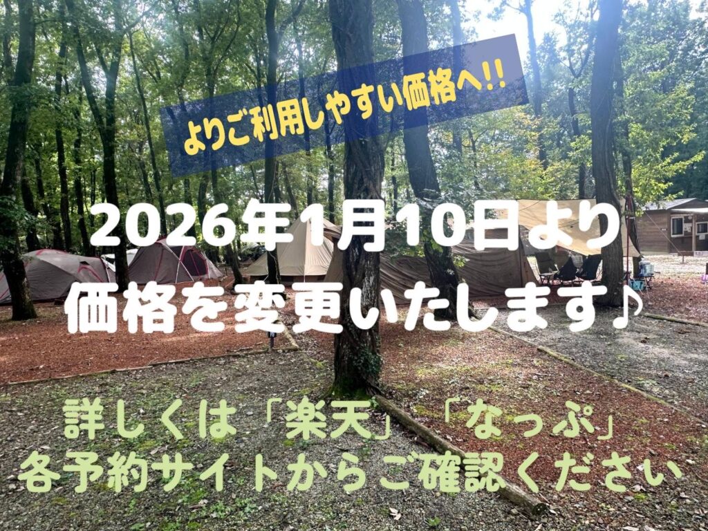 2026年1月10日ご宿泊分より基本料金を以下のとおり変更しました。